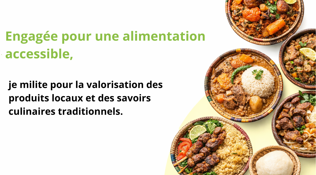 Engagée pour une alimentation accessible, je milite pour la valorisation des produits locaux et des savoirs culinaires traditionnels.